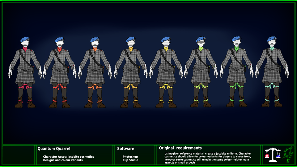I joined Fairsoul to help create a game called Quantum Quarrel. Quantum Quarrel is based heavily around GMod's Trouble in Terrorist Town, but with a timetaveling/interdimentional/retro future twist! A big part of my time (so far) on this project has been creating the team lead's style vision. Majority of the assests in the game have a very precice 1970 retro future look and feel to them. So it was very important to get these aspect designed correctly. At first I was given tech props to design, then I was quickly moved on to character model's and cosmetics - since we already had 2 other artists working on tech.